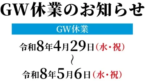 2026 GW休業のお知らせ